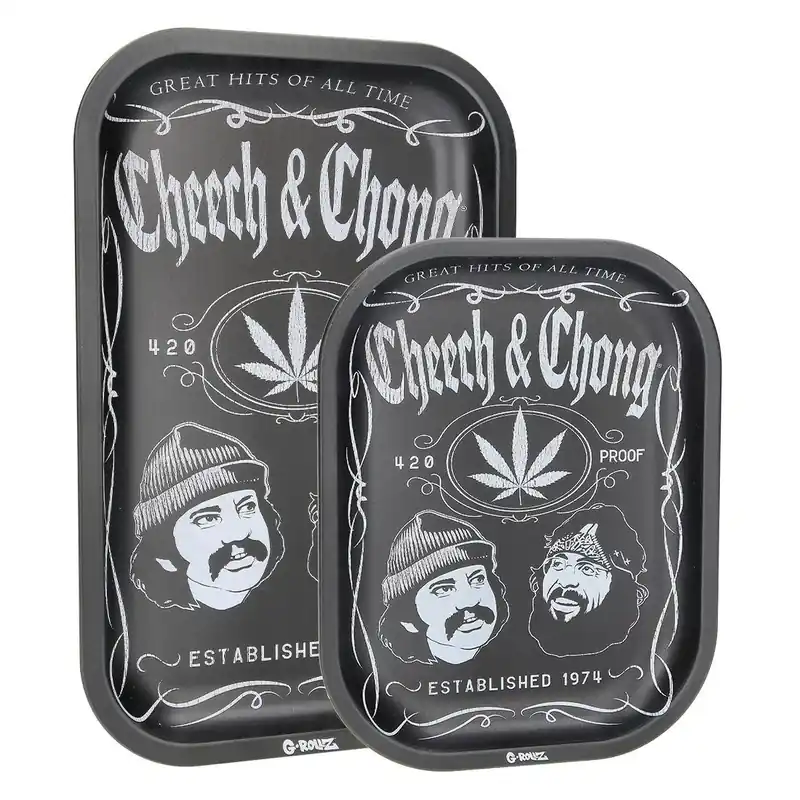 Le plateau Cheech and Chong Greatest Hits, confectionné avec soin par G-Rollz, célèbre le duo comique le plus emblématique des années hippies. Fabriqué en aluminium durable, il arbore fièrement un portrait saisissant de Cheech Marin et Tommy Chong, posant sur un fond noir mat. La finition de qualité garantit que ce plateau reste aussi intemporel que l’humour du duo.