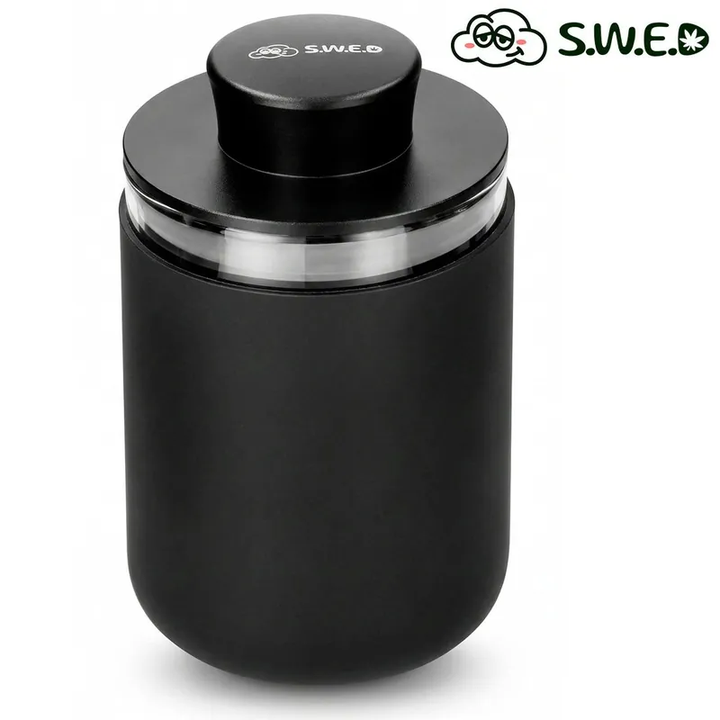 La jarre en verre SWED Stash Pro adopte un style minimaliste avec une finition noire mate qui lui donne un aspect sobre et élégant, capable de se fondre facilement dans n’importe quel environnement sans attirer l’attention.