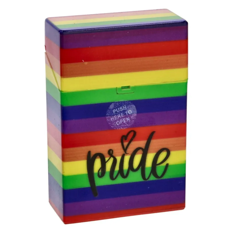 Cette boîte à cigarettes arbore des motifs vibrants célébrant l’amour et la fierté.