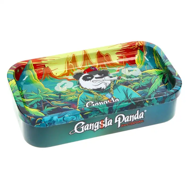 Le couvercle incurvé de la boîte Gangsta Panda Leaf Landscape offre une surface idéale pour rouler proprement.