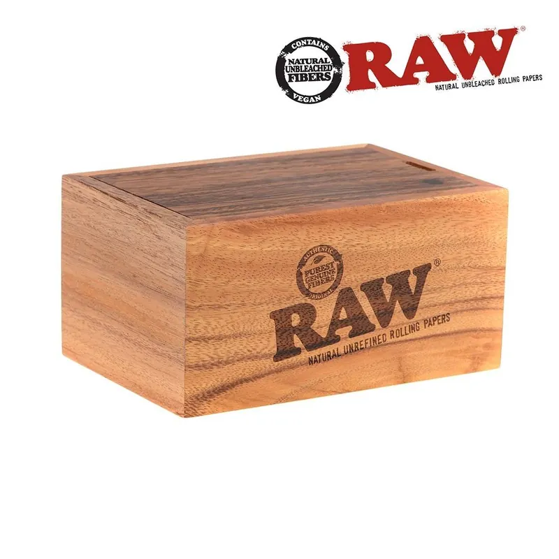 Cette boite en bois d’acacia, décorée du logo RAW, se montrera aussi pratique que simple d’utilisation : son couvercle se glisse en un tour de main pour vous laisser découvrir un espace vous permettant d’y ranger vos feuilles, vos filtres ou encore votre petit (ou gros) grinder.