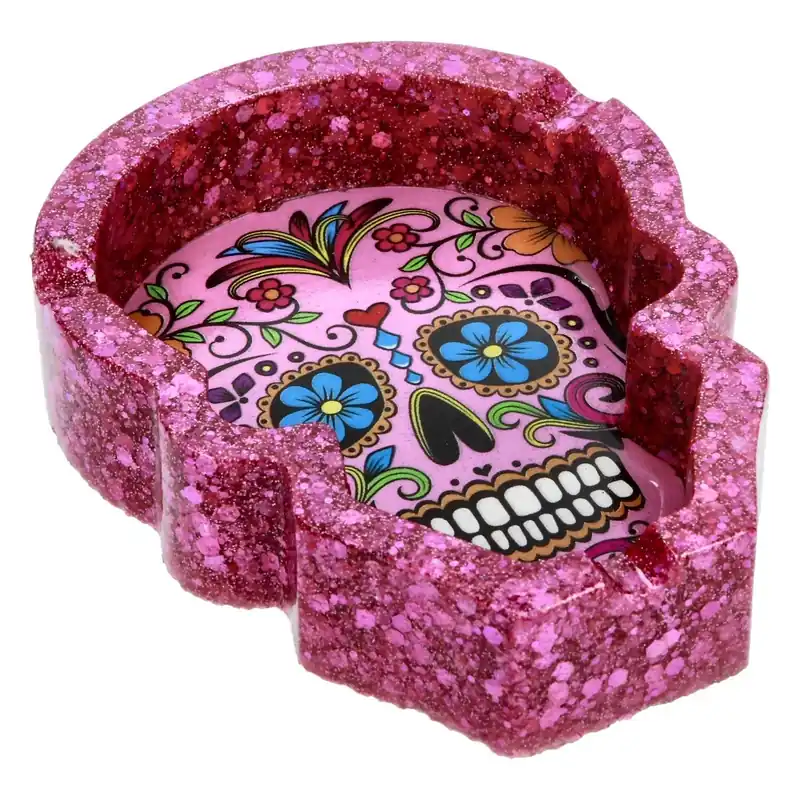 Avec ses 6 coloris aléatoires (bleu foncé, bleu clair, rose foncé, rose clair, jaune ou vert), son effet pailleté et ses dimensions compactes, le cendrier La Catrina est aussi bien un objet utile qu’un accessoire décoratif à part entière.