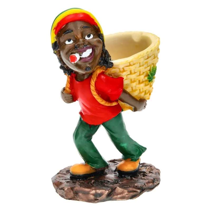 Chaque détail, du sourire amusé du rasta à la texture du panier, a été méticuleusement sculpté à la main, ce qui rend ce cendrier unique en son genre et parfait pour ceux qui aiment la culture rasta.