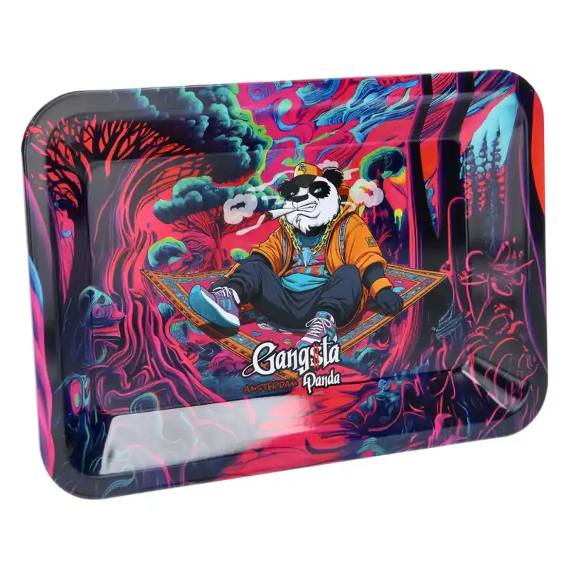Le plateau Gangsta Panda Flying Rasta allie fonctionnalité et style avec son design unique et compact, parfait pour organiser vos accessoires tout en ajoutant une touche fun.