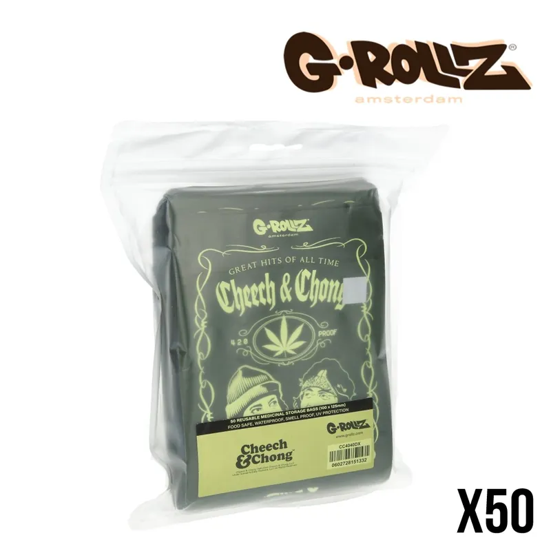 Le lot de 50 sachets zip G-Rollz Cheech & Chong High Rollers se distingue par son graphisme unique mettant en vedette le célèbre duo comique.