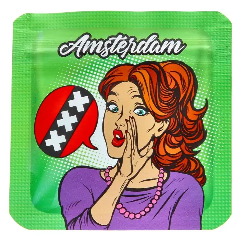 Un sachet zip imperméable avec un design original sur le thème de la ville d’Amsterdam affichant le célèbre symbole XXX !