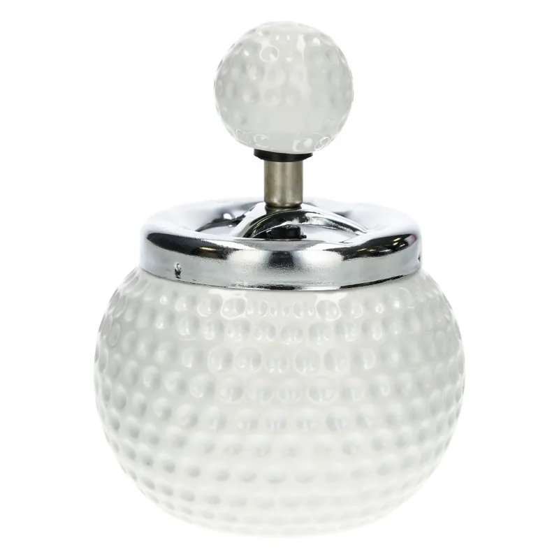 Le cendrier poussoir Golf reprend fidèlement l’esthétique d’une balle de golf, avec un relief ponctué d’alvéoles régulières qui rappellent la surface emblématique de ce sport.