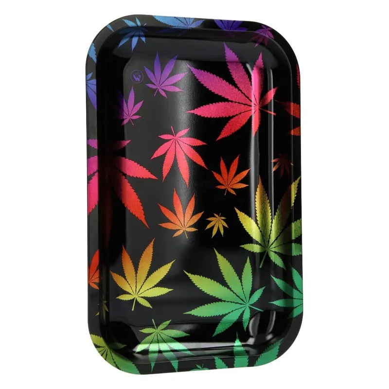 Le design unique de ce plateau à rouler est orné de feuilles de chanvre en dégradé de couleurs, ce qui en fait un accessoire incontournable pour tous les fans de la culture cannabique.