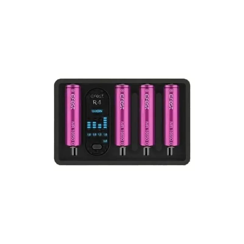 Le chargeur Efest iMate R4 représente l’apogée de la technologie de charge premium pour vos batteries, offrant des fonctionnalités intelligentes pour une optimisation maximale du processus de chargement.