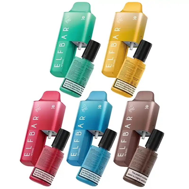 Elfbar fait son retour avec un tout nouveau format de puff rechargeable grâce à son starter kit AF5000. Ce kit comprend une batterie et une cartouche préremplie généreuse en e-liquide, offrant de longues sessions de vape. Son design compact facilite le transport et assure une prise en main agréable.