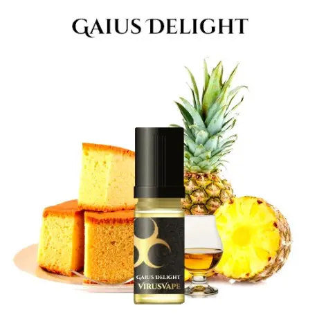 L’arôme Gaius Delight est un concentré de la marque Virus Vape, créé en hommage au célèbre youtubeur Gaius de Culture Vape. Ce concentré vous propose un fabuleux gâteau à l’ananas avec une lichette de rhum, pour une expérience gustative unique. Imaginez la gourmandise des fruits mûrs associée à la douceur du rhum, le tout dans une seule bouffée. C’est tout simplement délicieux !