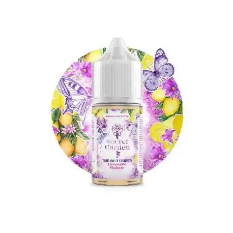 Concentré The Butterfly Secret Garden 30 ml. Un mélange rafraîchissant de citron et de violette.Concentré Jardin Secret, proposé en flacon de 30 ml. À diluer dans votre base PG/VG préférée.