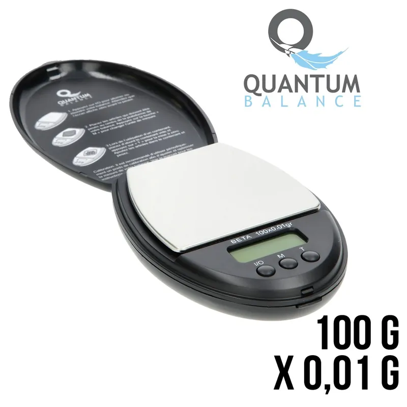 La balance de précision Quantum Beta 100 est livrée avec ses piles AAA et une notice en français pour une prise en main immédiate.