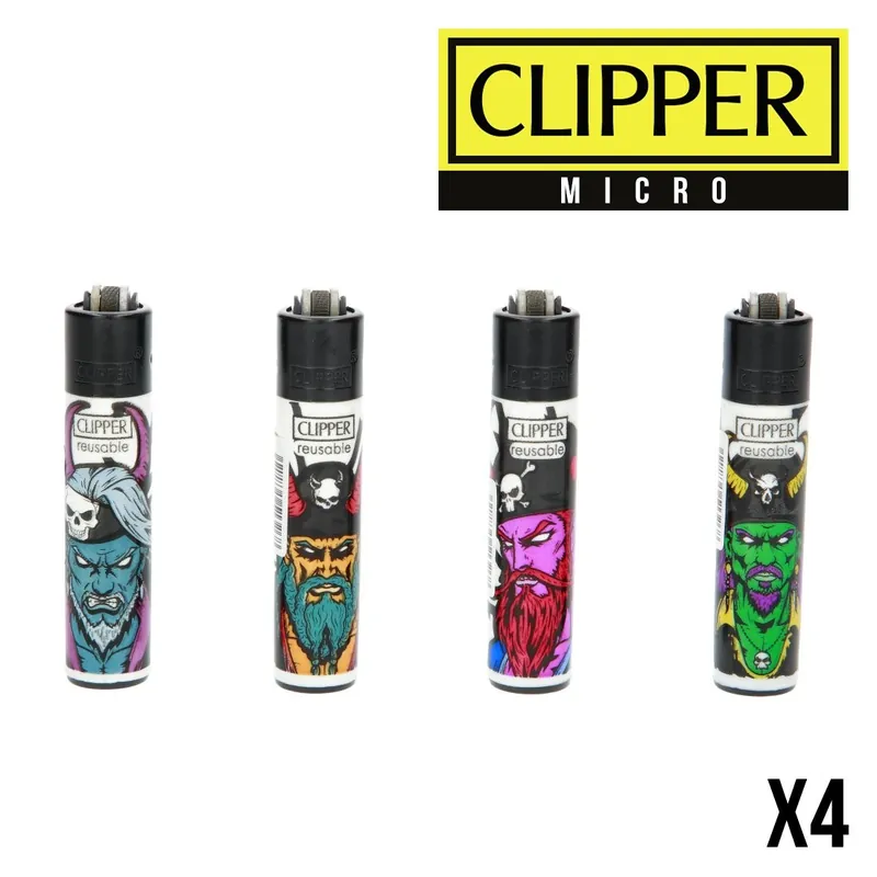 Avec le Micro Clipper Evil Pirate, vous recevez un ensemble de quatre briquets décorés au style pirate, réunis dans un lot pratique qui permet d’en garder toujours un sous la main.