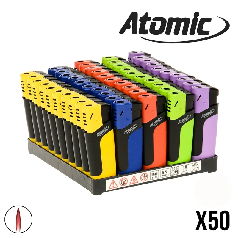 Ces briquets Atomic sont équipés d’une flamme tempête d’un rouge intense, conçue pour résister aux intempéries. La flamme réglable s’ajuste facilement, offrant une grande polyvalence pour des usages variés, du barbecue à la cuisine en passant par les activités extérieures. Fiables et performants, ces briquets garantissent un allumage efficace même dans des conditions venteuses. Ce lot de 50 permet de répondre à des besoins élevés tout en bénéficiant de la qualité Atomic, reconnue pour sa robustesse et son innovation.