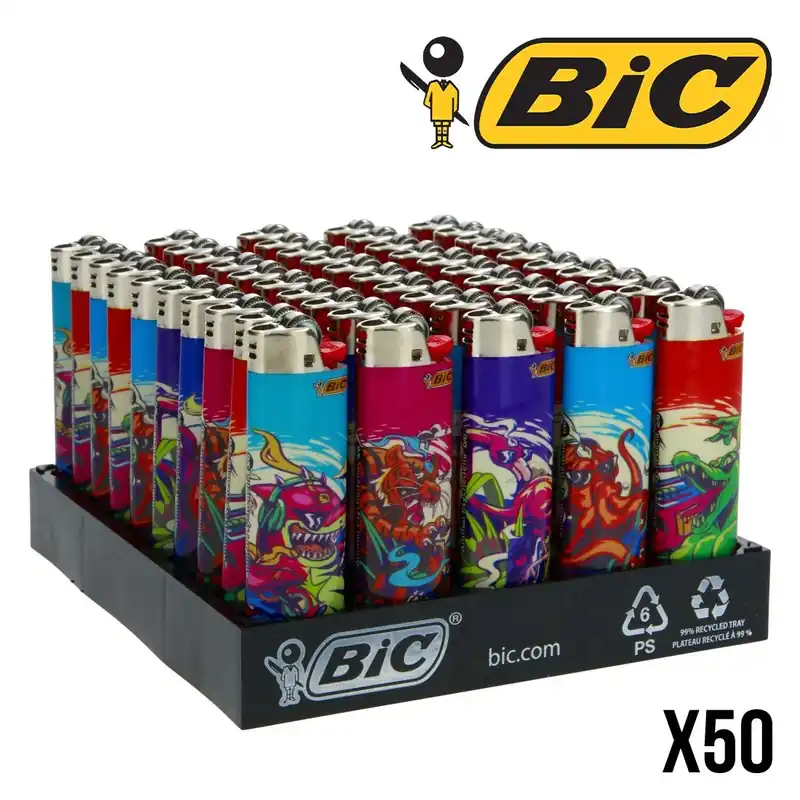 Chaque briquet affiche le logo BIC et une illustration qui se remarque instantanément.
