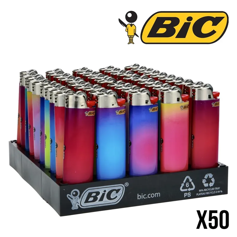 Ce display contient 50 briquets BIC Aura avec des motifs colorés et modernes.