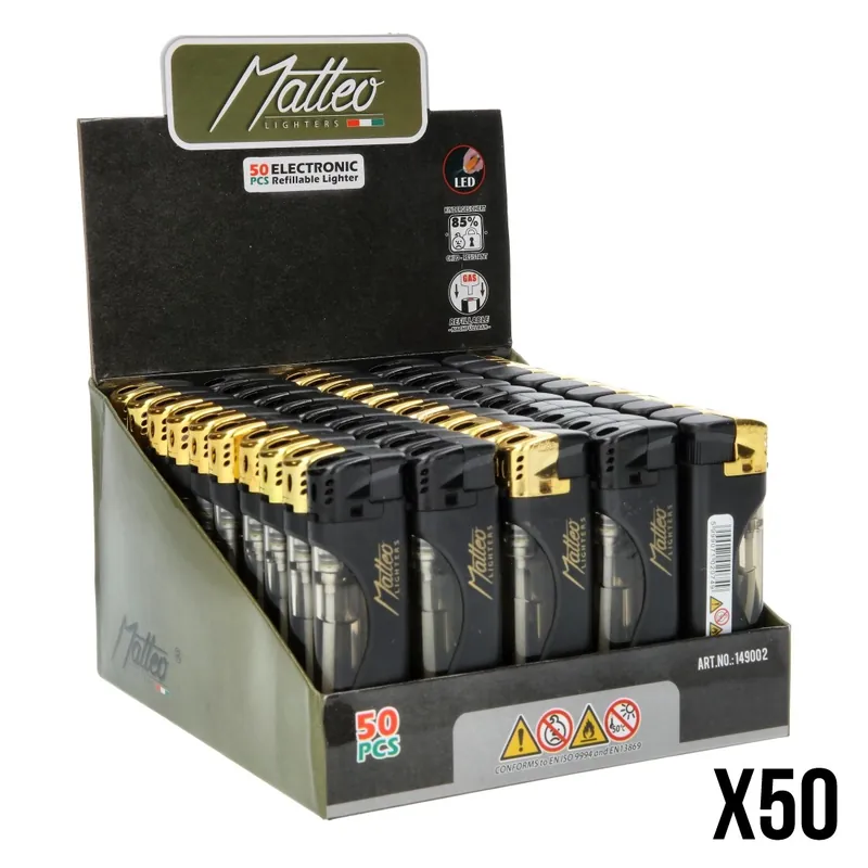Caractéristiques du Lot de 50 Briquets Électroniques Matteo LED Curly Gold