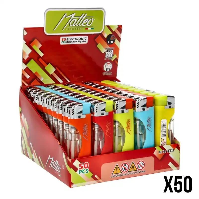 Caractéristiques du Lot de 50 Briquets Électroniques Matteo LED Curly Vivid