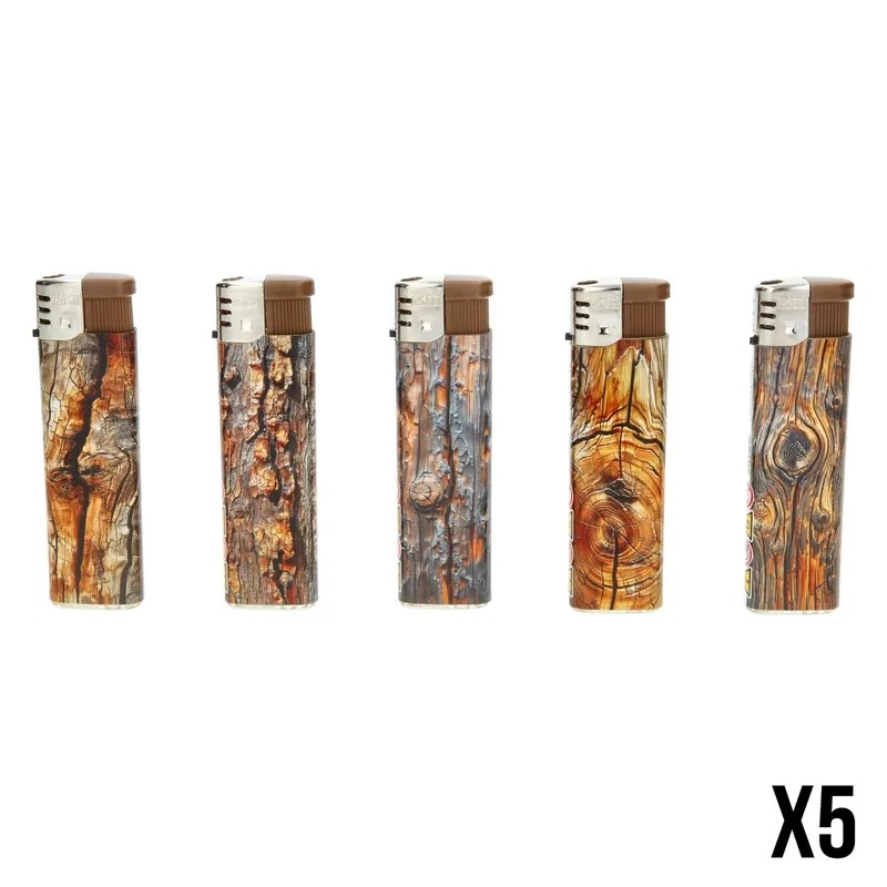 Le lot de 5 briquets Nass Wooden séduit par son esthétique inspirée de la nature.