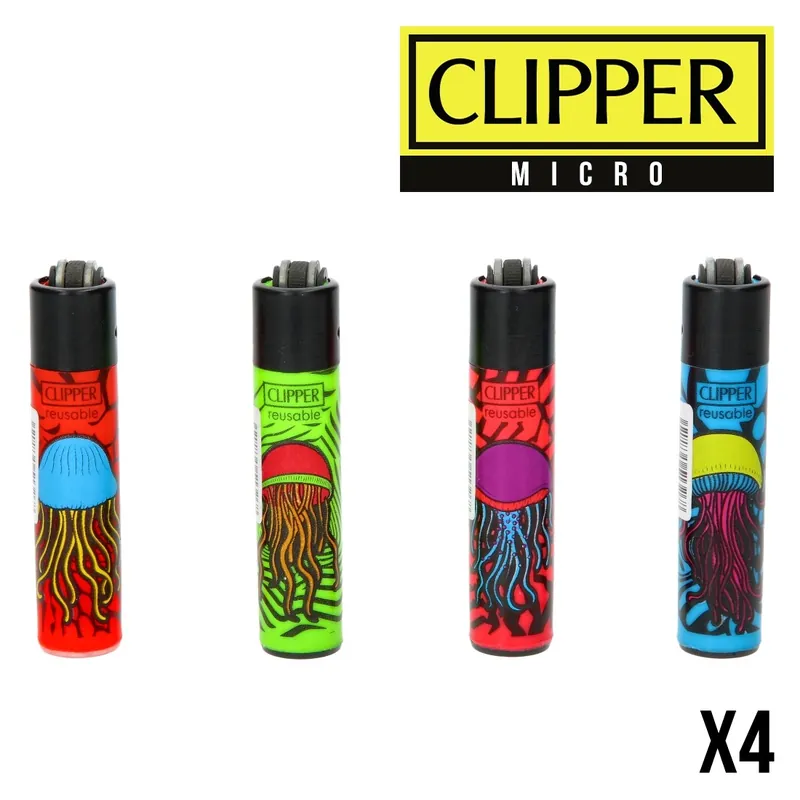 - Lot de 4 briquets Micro Clipper avec motifs Jellyfish