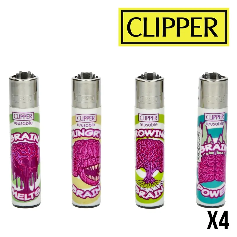 Apportez une touche d’originalité à votre quotidien avec le lot de briquets Clipper Brains, une combinaison parfaite entre design créatif et praticité.