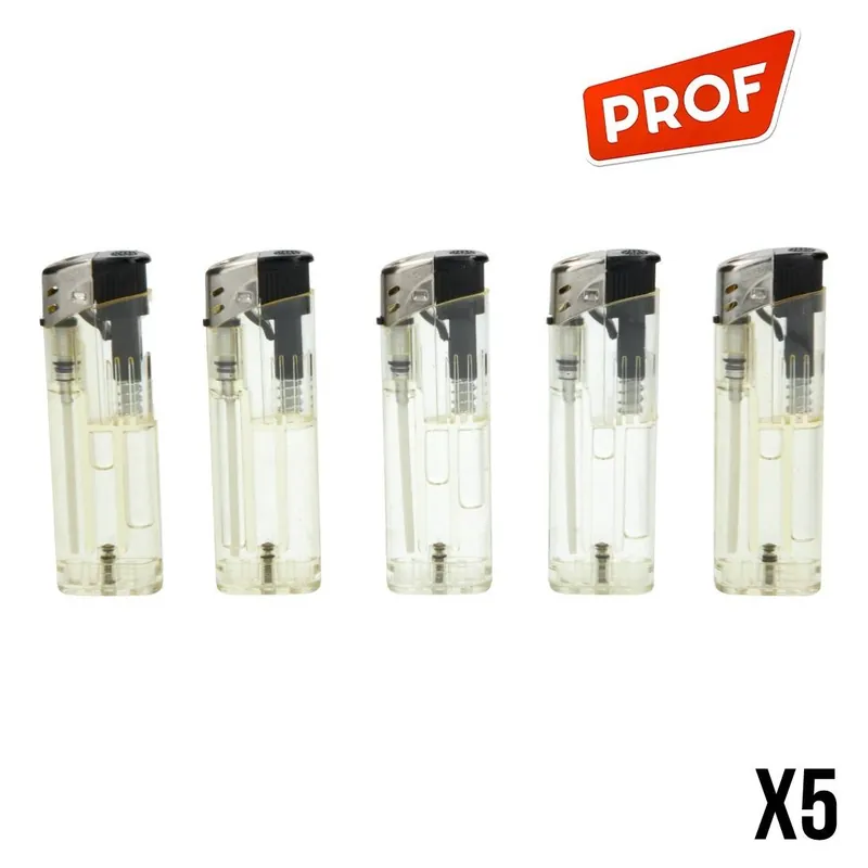 Lot Économique de 5 Briquets Électroniques Prof Transparent : Un Achat Malin !