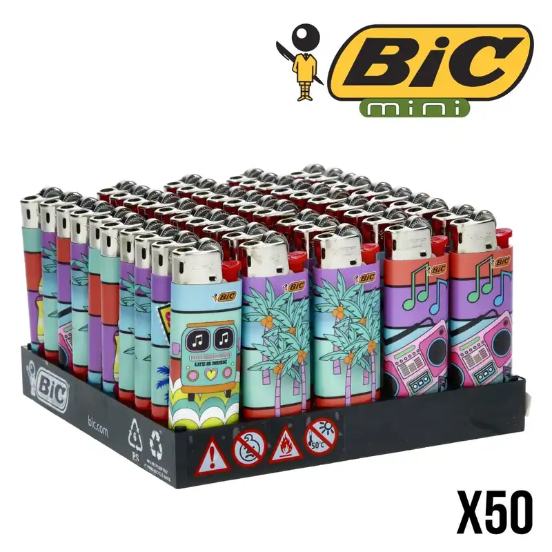 Le BRIQUET BIC MINI SUMMERLAND X50 contient cinquante briquets compacts de 6,3 cm.