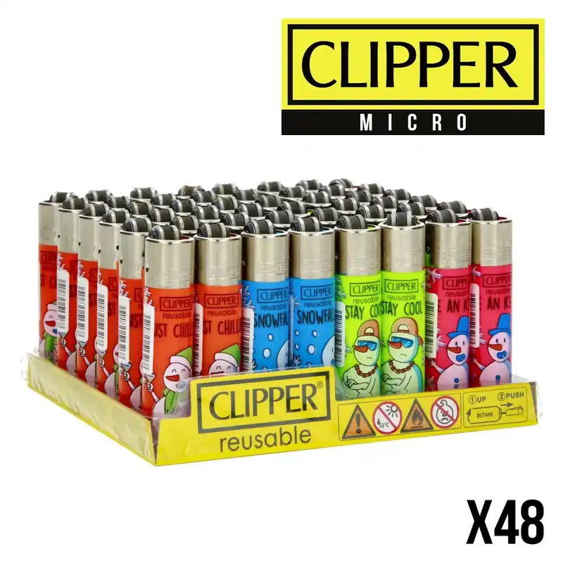 Display de 48 briquets Micro Clipper décorés pour l’hiver
