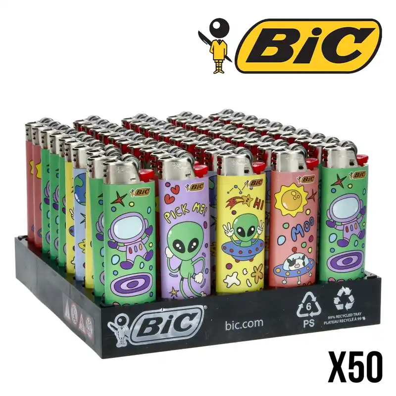 Ce display contient 50 briquets BIC Crazy Space, tous basés sur le format J26, connu pour sa longévité et sa prise en main simple.