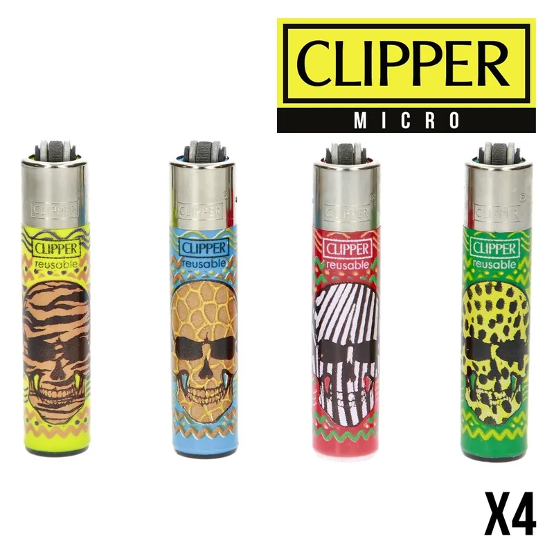 Les Micro Clipper Wild Skulls X4 arborent des créatures crâniennes stylisées façon wild skull, avec un look sombre et marqué.