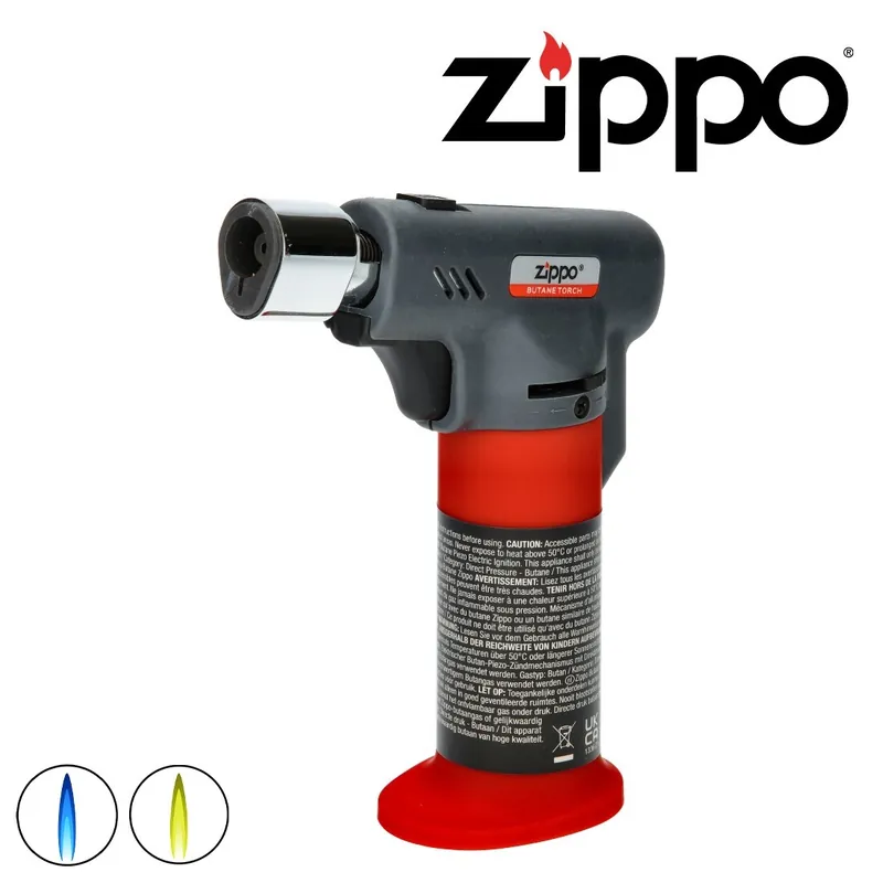 Le Zippo Torch se distingue par son système de double flamme, offrant une flamme chalumeau bleue puissante et une flamme classique jaune. La flamme chalumeau, atteignant jusqu’à 1300°C, est idéale pour des tâches nécessitant une chaleur intense, comme la fonte, la cuisine ou même de petits travaux de soudure. La flamme classique, plus douce, est parfaite pour des usages quotidiens tels que l’allumage de bougies, d’encens ou de papier. Ce choix entre deux modes d’allumage rend ce briquet particulièrement polyvalent et adapté à différents besoins.