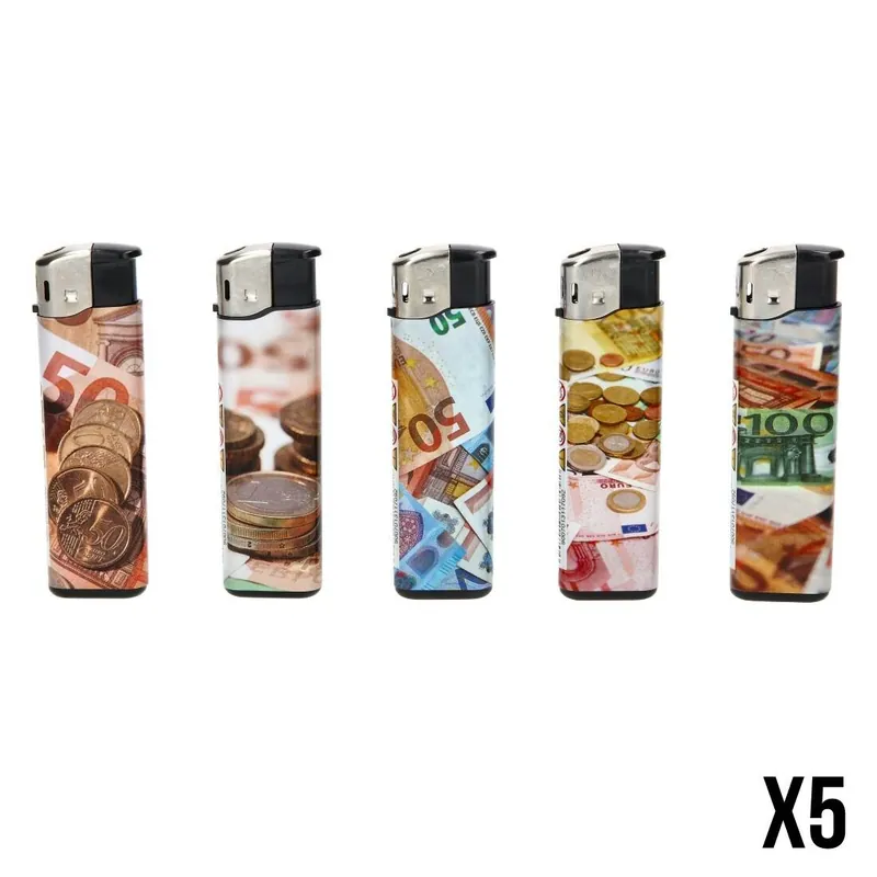 Alliez style et praticité avec le lot de 5 briquets LUX, inspiré par le design élégant des billets d’euros, idéal pour les amateurs de pièces originales.
