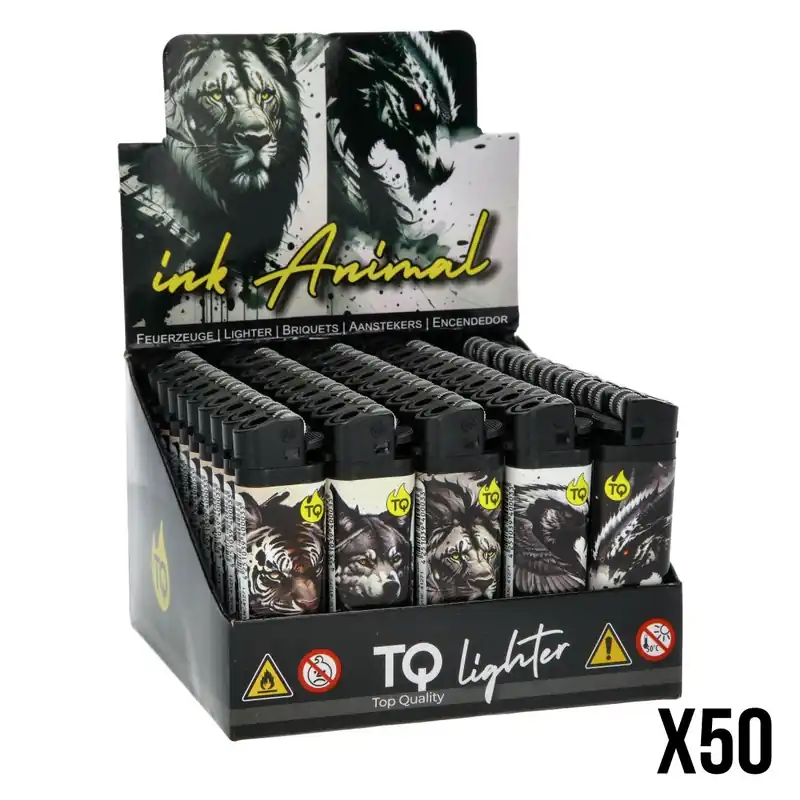 Le display Tobaliq Ink Animals regroupe 50 briquets pierre aux dimensions de 8,1 x 2,2 x 1 cm.