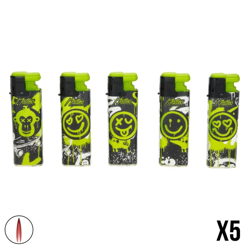 Apportez une touche de style urbain à vos accessoires avec le briquet turbo Matteo Smiley Graffiti, alliant praticité et design unique.