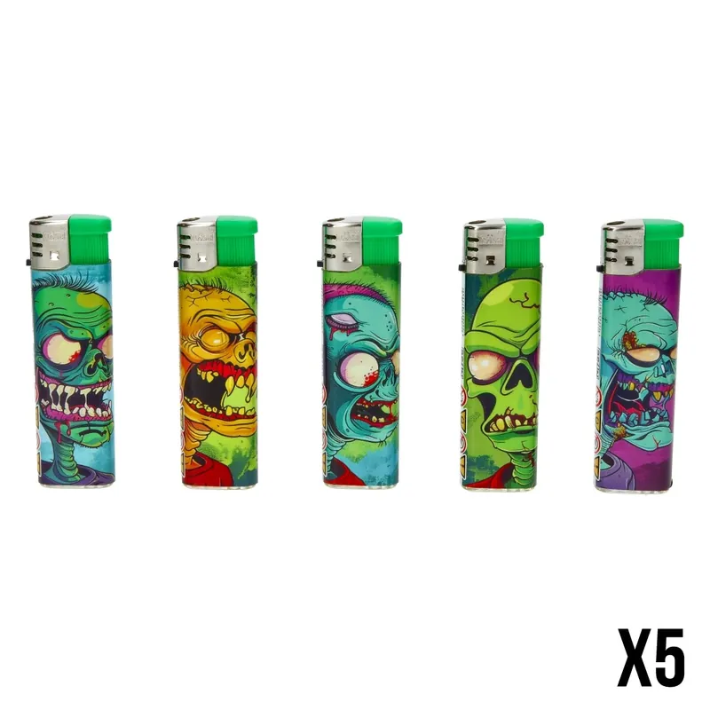 Le lot de 5 briquets Nass Wild Zombie ne passe pas inaperçu avec ses têtes de zombies terrifiantes et pleines de détails.