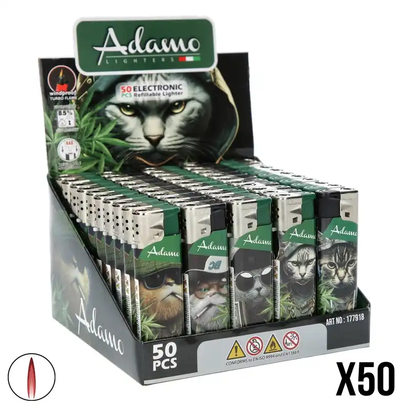 Optez pour le display de 50 briquets Adamo Cat Leaf et soyez toujours prêt à allumer, que ce soit pour vous ou pour partager avec vos proches !