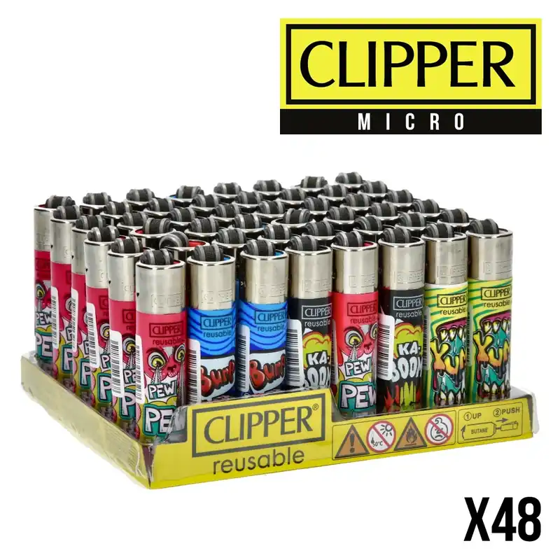 Ce display de 48 Micro Clipper regroupe les 4 visuels délirants de la série Onomatopoeia, avec 12 exemplaires par modèle pour varier les plaisirs :