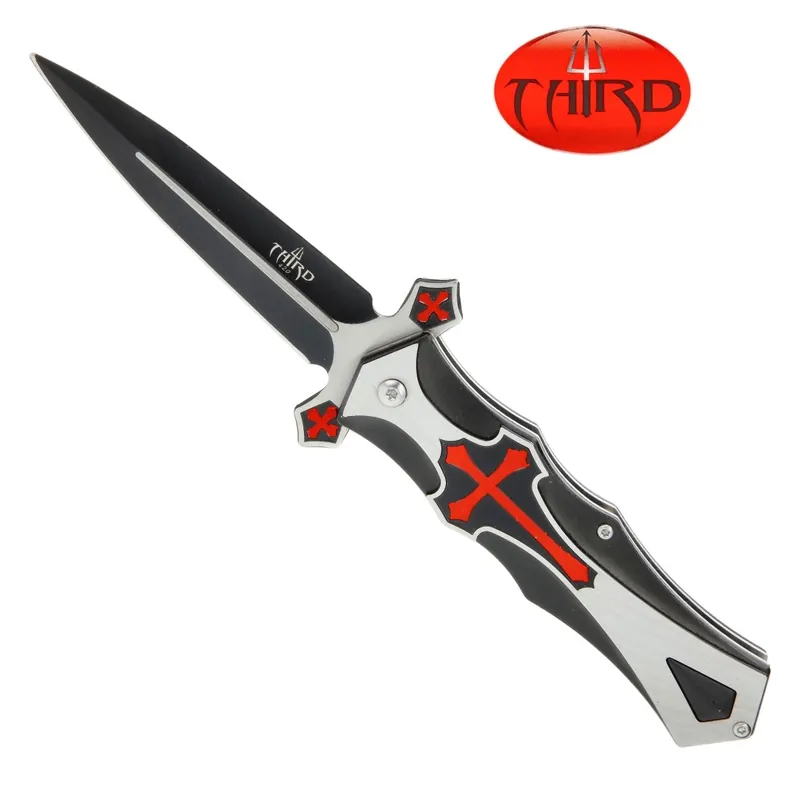 Equipé d’un manche en aluminium noir et gris orné de la Croix des Templiers, ce couteau n’est pas seulement un outil mais aussi une pièce de collection. L’ouverture assistée par flipper assure une rapidité d’exécution inégalée, tandis que le mécanisme de verrouillage Liner Lock garantit une sécurité optimale lors de son utilisation.