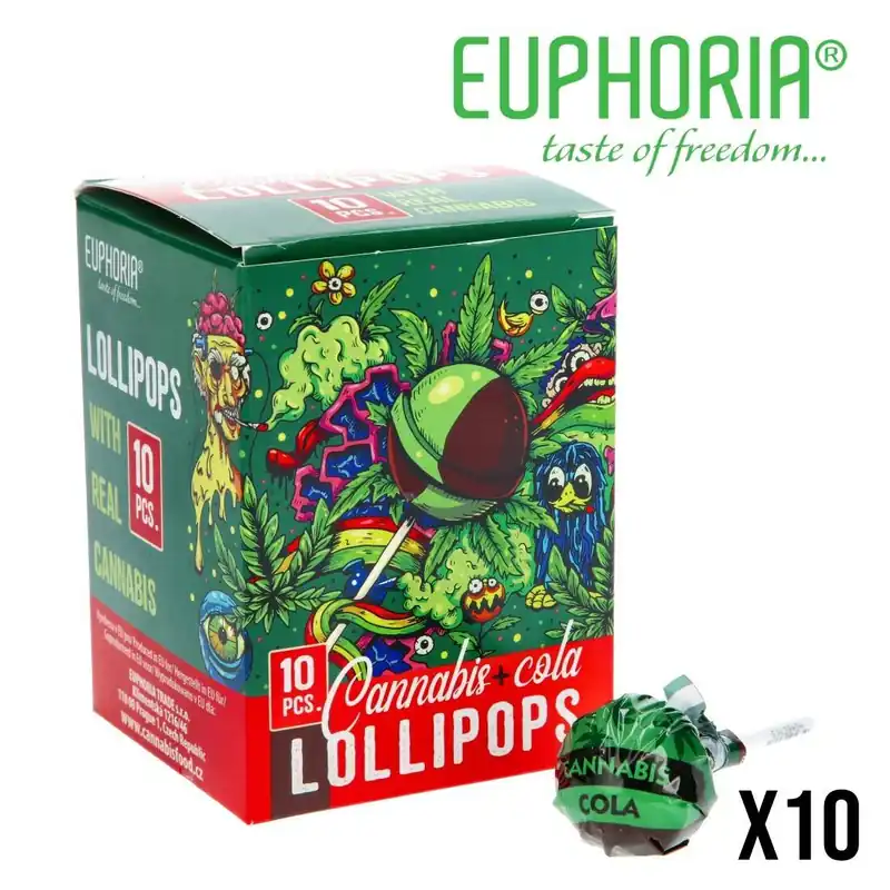 SUCETTE EUPHORIA CANNABIS LOLLIPOPS COLA PAR 10