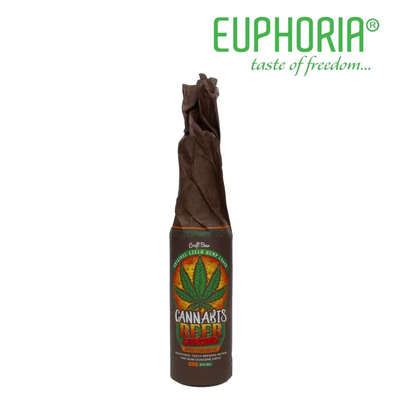 Amateurs de bières originales et de saveurs inédites, découvrez la Euphoria Cannabis Wrap Beer Strong ! Une lager au caractère bien trempé, qui marie la tradition brassicole tchèque à une touche audacieuse de chanvre.