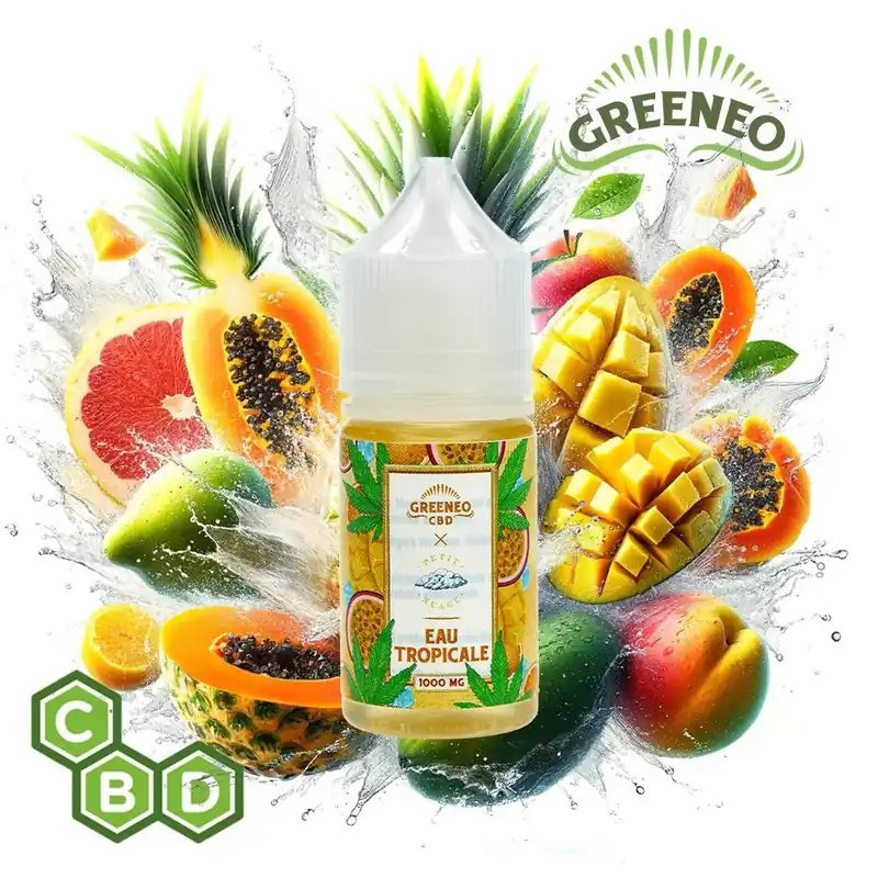 Plongez dans un univers exotique avec le E-LIQUIDE CBD GREENEO L’EAU TROPICALE 30ML, une escapade fruitée mêlée aux vertus apaisantes du CBD.