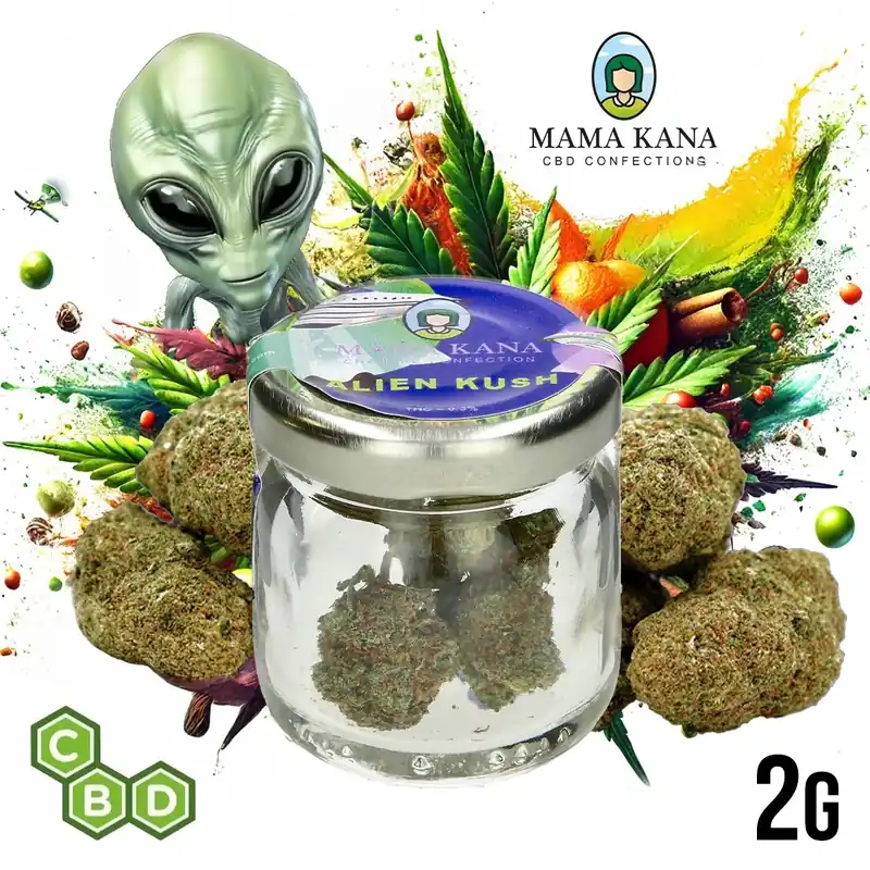 Plongez dans une expérience exceptionnelle avec la fleur de CBD Alien Kush de Mama Kana, une variété haut de gamme cultivée en hydroponie pour une qualité inégalée.