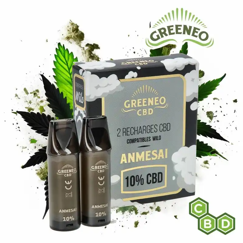 Plongez dans l’univers du chanvre avec les cartouches Anmesai spécialement conçues pour la e-cigarette rechargeable Greeneo X Wilo.