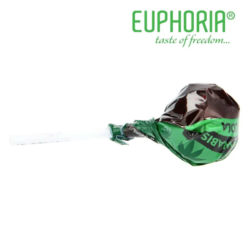 Découvrez les Sucettes Cannabis Lollipops Cola de la marque Euphoria, pour une pause gourmande et relaxante !