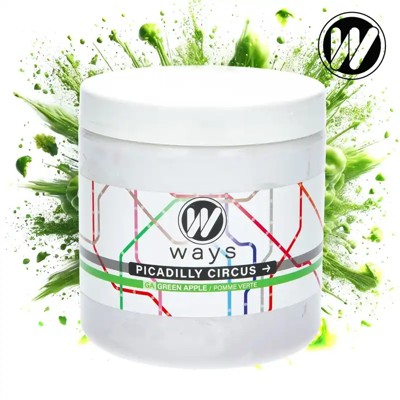 Le Ways Picadilly Circus offre une expérience gustative unique avec sa saveur intense de pomme verte glacée. Ce substitut pour chicha, composé de feuilles de cellulose finement coupées et aromatisées, vous permet de savourer une chicha riche en arômes et en fraîcheur.