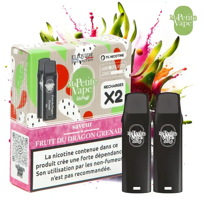 Découvrez la combinaison exotique et rafraîchissante de la cartouche Ma Petite Vape RePuff Fruit du Dragon Grenade Glacée 600 Puffs !
