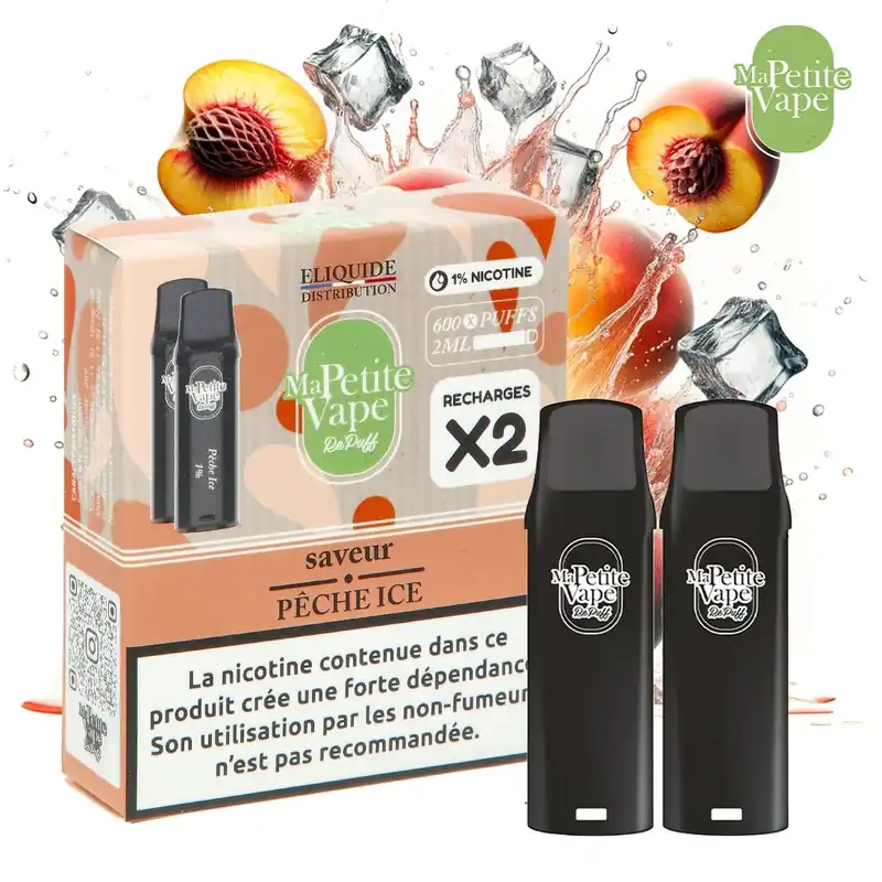 Découvrez la douceur fruitée avec la cartouche Ma Petite Vape RePuff Pêche Ice 600 Puffs !