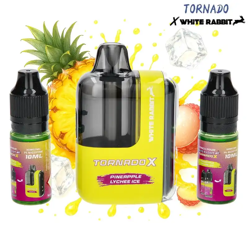 Découvrez la Tornado X 25K Pineapple Lychee Ice, la puff rechargeable qui mixe style et performance sans se prendre au sérieux.