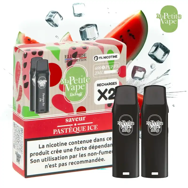 Plongez dans une fraîcheur fruitée avec la cartouche Ma Petite Vape RePuff Pastèque Ice 600 Puffs !